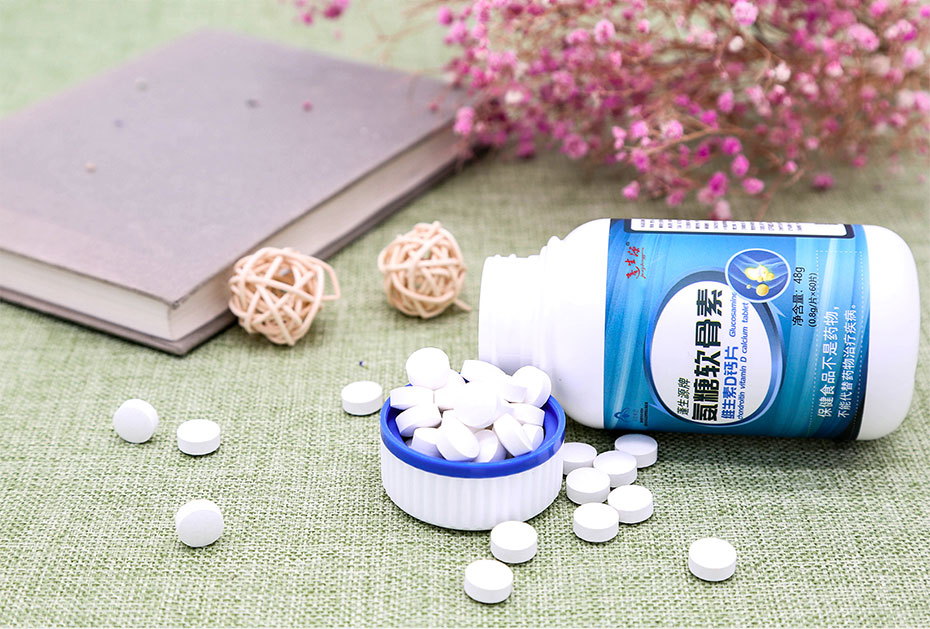 主要原料:碳酸鈣、D-氨基葡萄糖鹽酸鹽、硫酸軟骨素、維生素D3、微晶纖維素、聚維酮K30、硬脂酸鎂